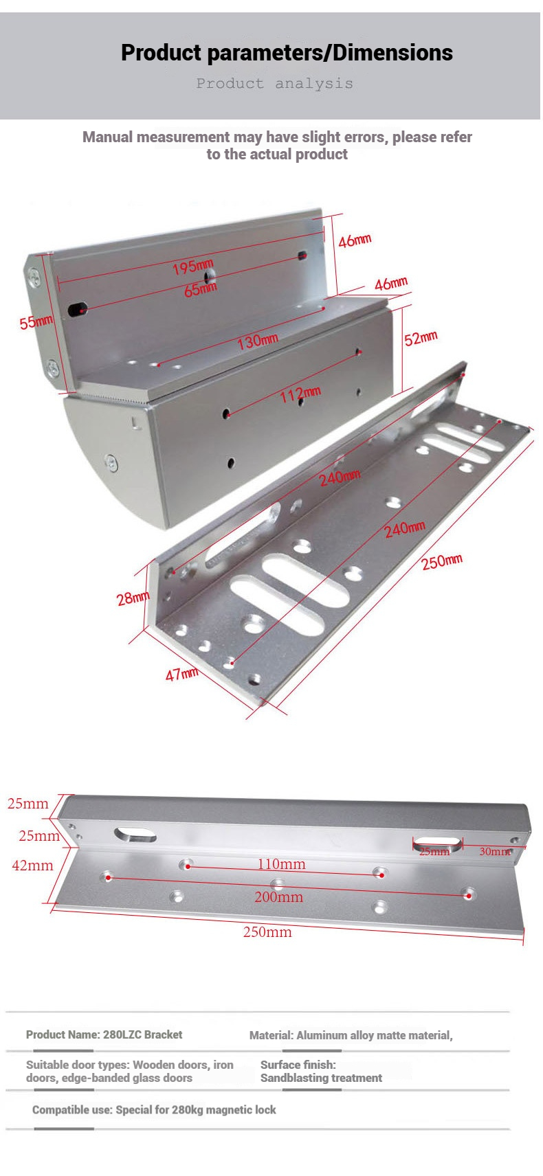 Compatibilité: Vérifiez toujours la compatibilité du support avec le modèle de maglock spécifique (par exemple, les modèles EL-600S, EL-600SD, EL-600ST, EL-600SZ, 280KG de l'usine S4A fonctionnent uniquement avec des verrous de 600 lb)